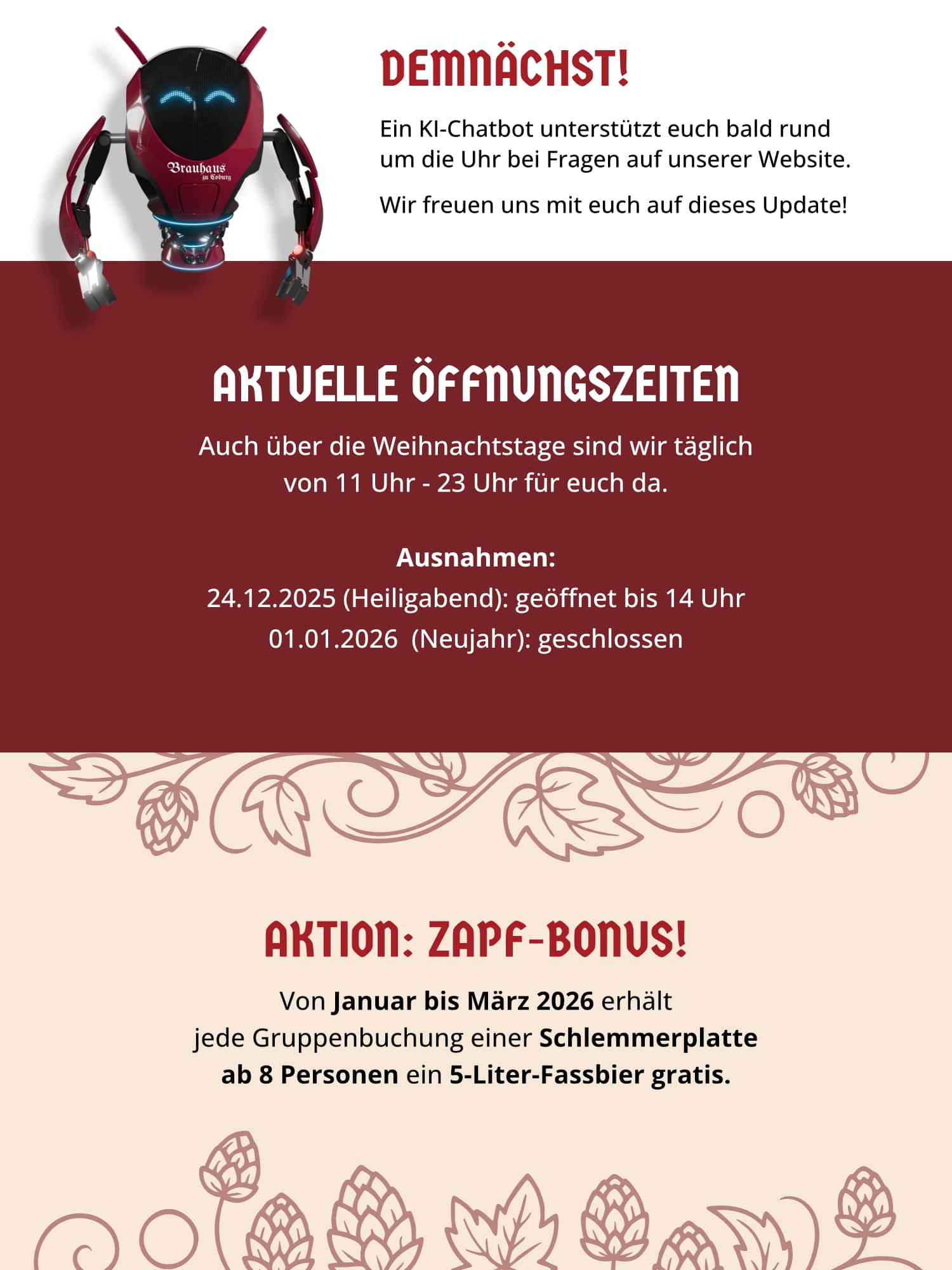 Im Brauhaus zu Coburg finden Sie den lebendigen Treffpunkt der Geselligkeit und den krönenden Abschluss Ihres Tages: